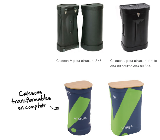 Le stand peut se transformer en 3 structures de 2,5 pieds de largeur – (voir image ci-basse)