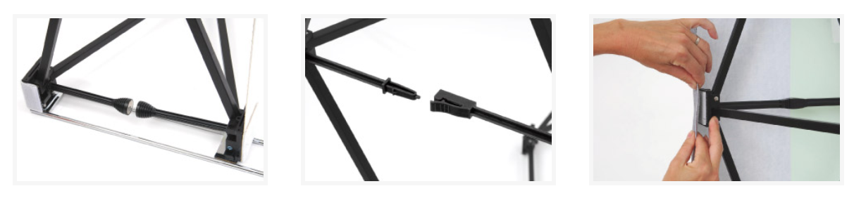 Le visuel créé sur tissu reste attaché à toute la structure même lorsqu’elle est pliée. Le montage se veut simple, rapide et intuitif. La structure du Virage est équipée de velcros qui vous garantiront une tenue parfaite du visuel.